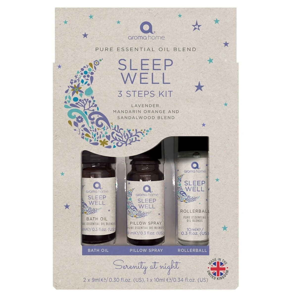 Relax and unwind with this Aroma Home therapy set of three essential oils designed to promote good sleep and relaxation. Sleep Well is a blend of pure essential oils and it includes lavender, sandalwood and mandarin which all add freshness to your home and will help you to drift off to sleep.