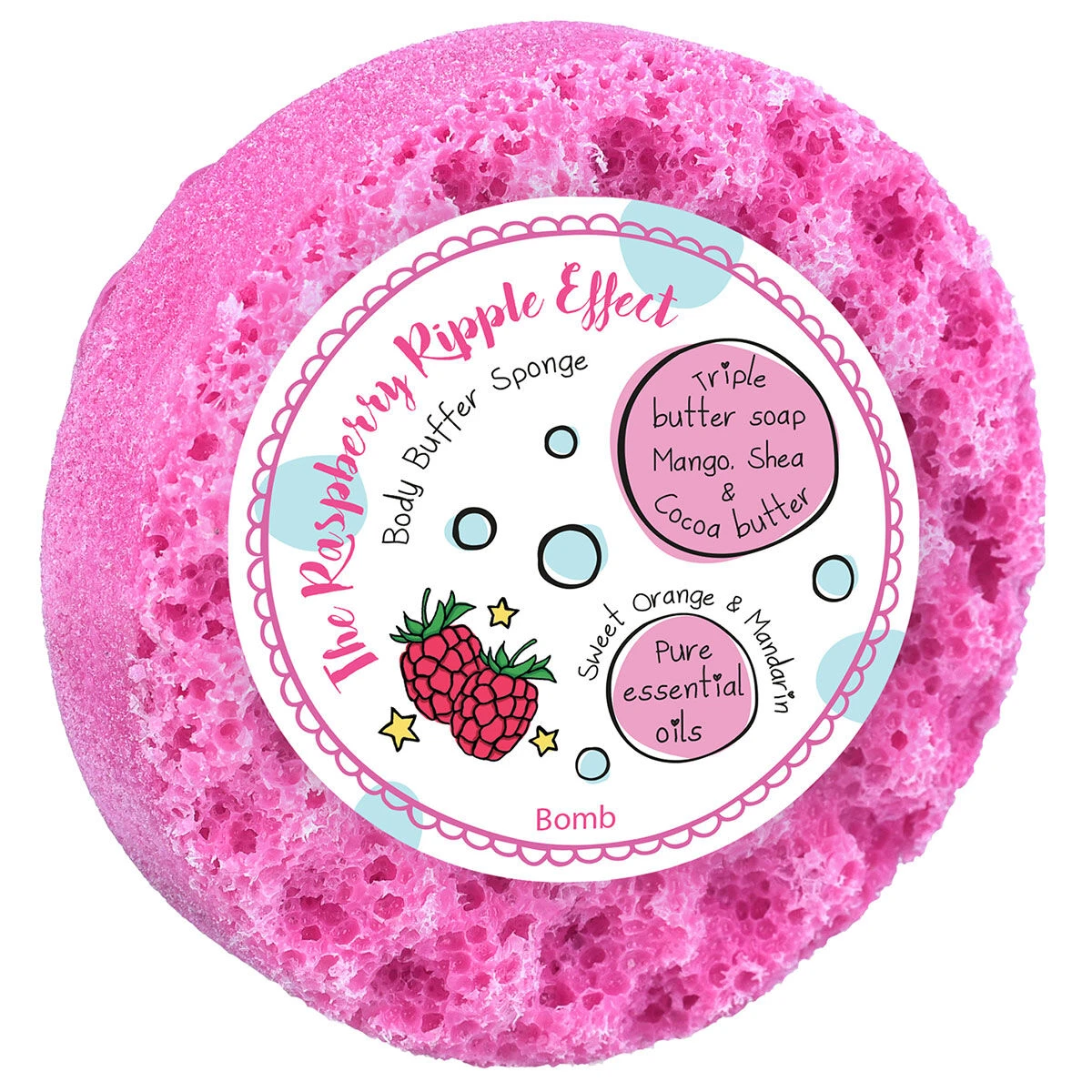 Seize the day and upgrade your bath or shower with this The Raspberry Ripple Effect body buffer shower soap from Bomb Cosmetics.