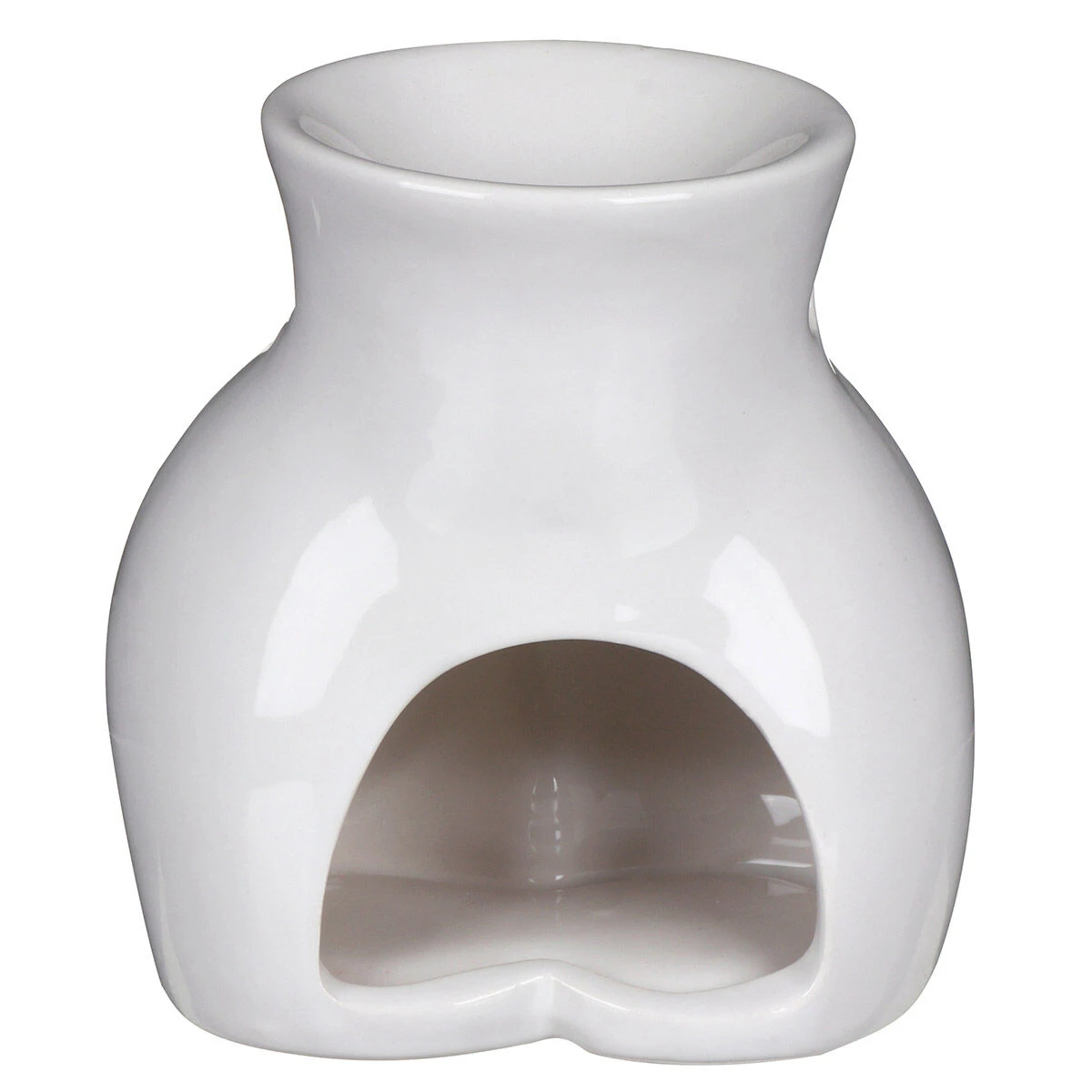 Moulded out of ceramic in the silhouette of a shapely woman’s derriere, this wax melt warmer is a sleek white colour. The peachy, cheeky bum goes up to the waistline of the figurine where there is a curved dish for you to place your wax melt into, specially designed to help the wax melt evenly and allowing the fragrance to disperse equally. The opening on the melt warmer has space for you to place an unscented tea light inside, allowing your favourite fragrance to fill the room. The modern design makes it a wonderful choice for placing as an ornament anywhere in your home.