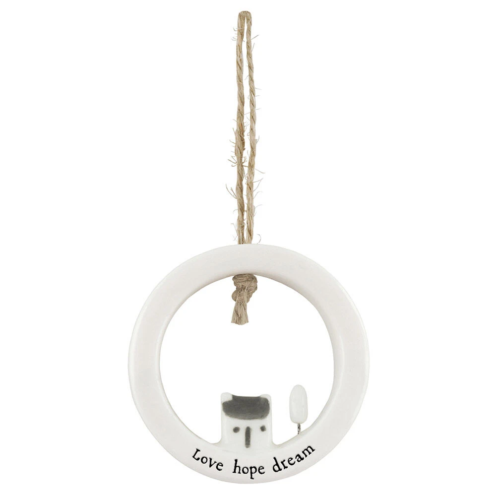 East of India ‘Love Hope Dream’ Circle Porcelain Hanger