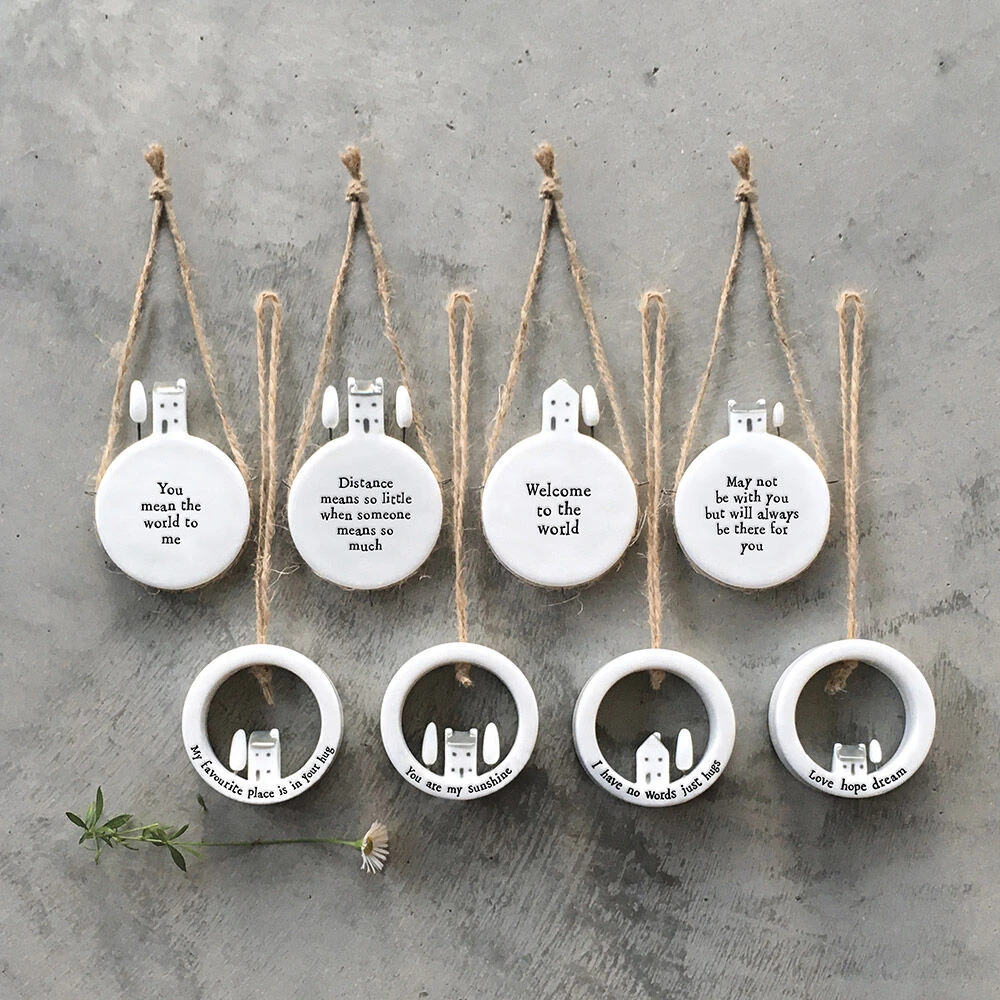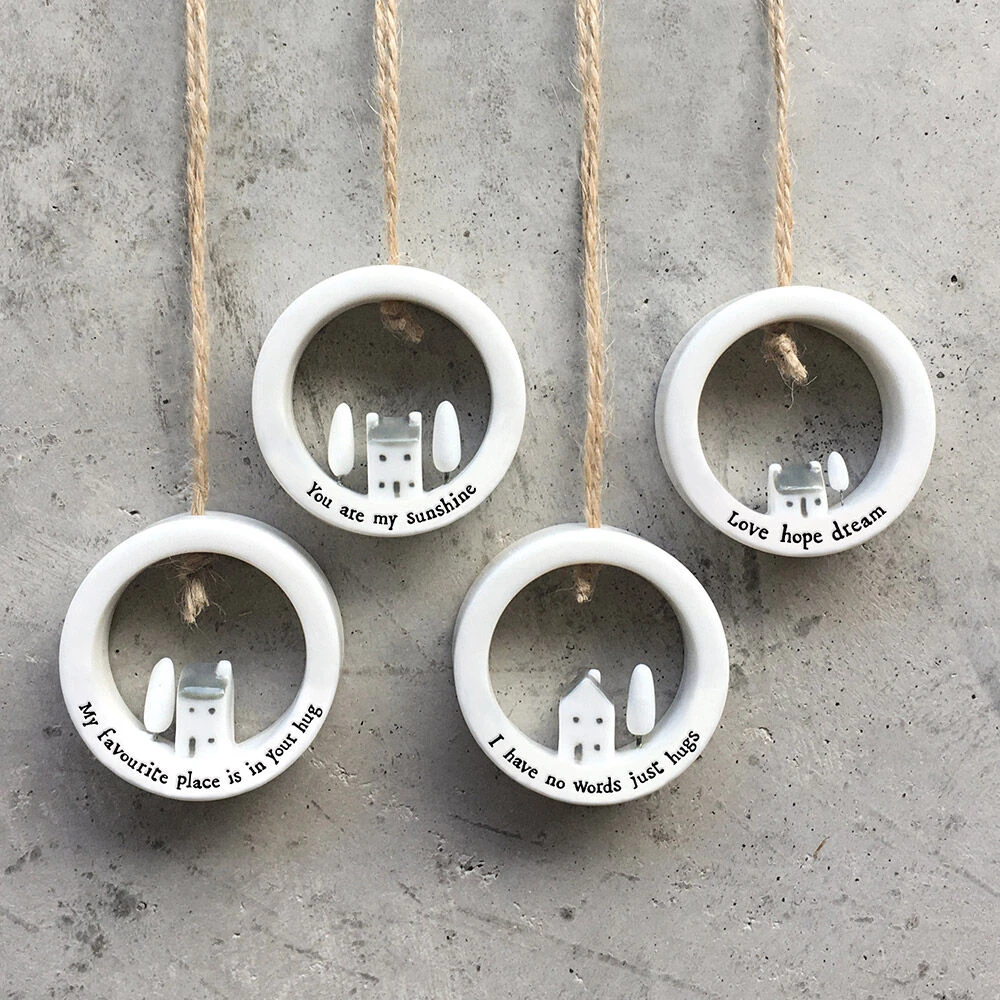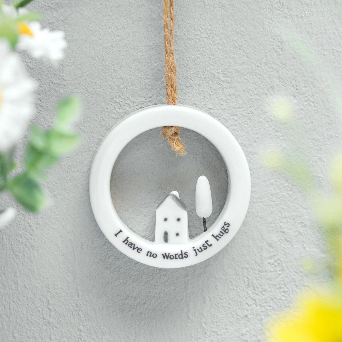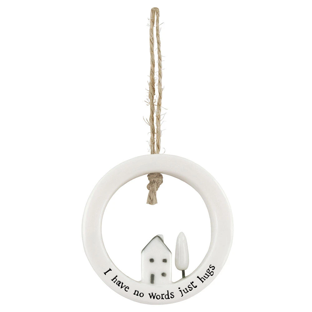 East of India ‘No Words Just Hugs’ Circle Porcelain Hanger