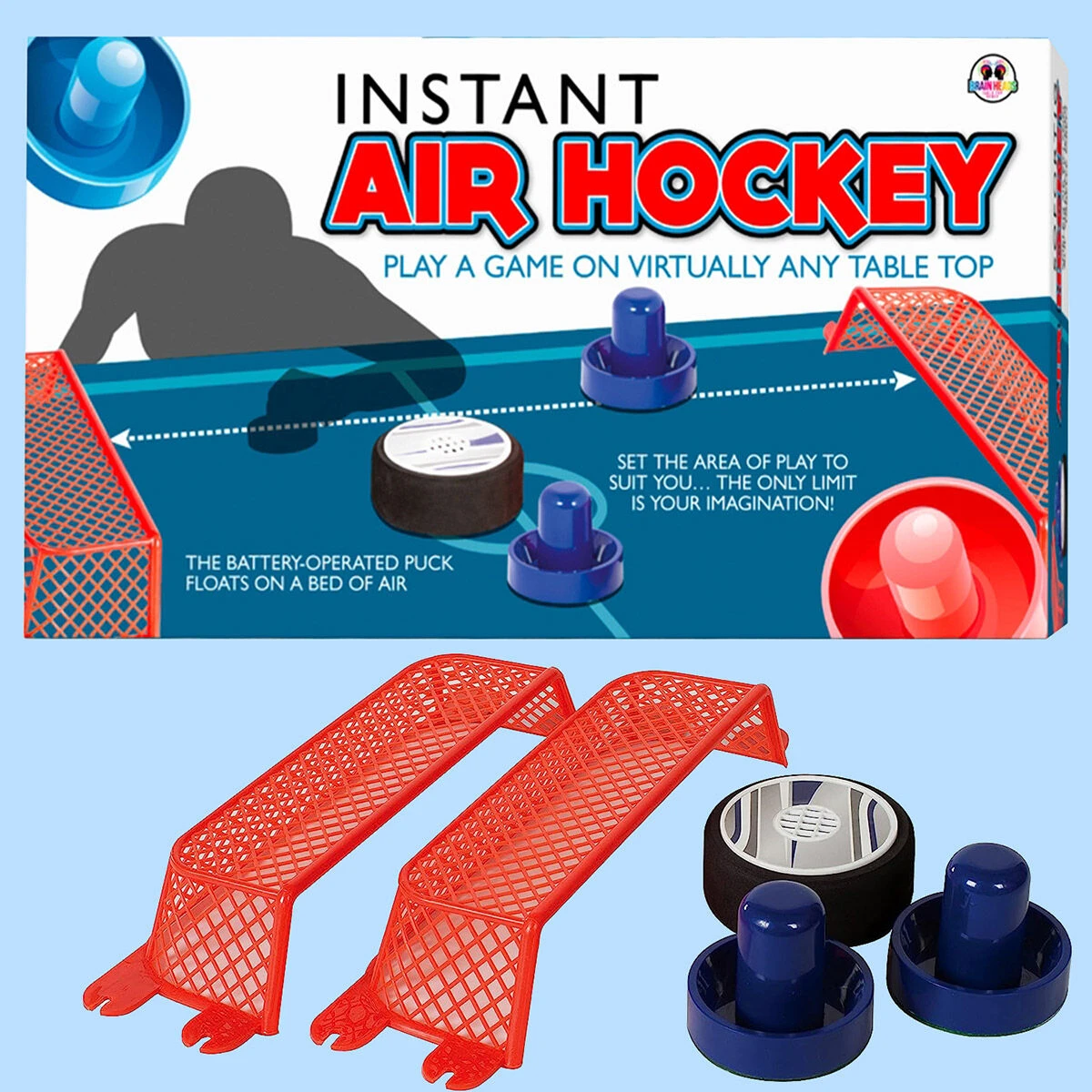 This ingenious tabletop game allows you to play air hockey on virtually any tabletop or polished floor surface!