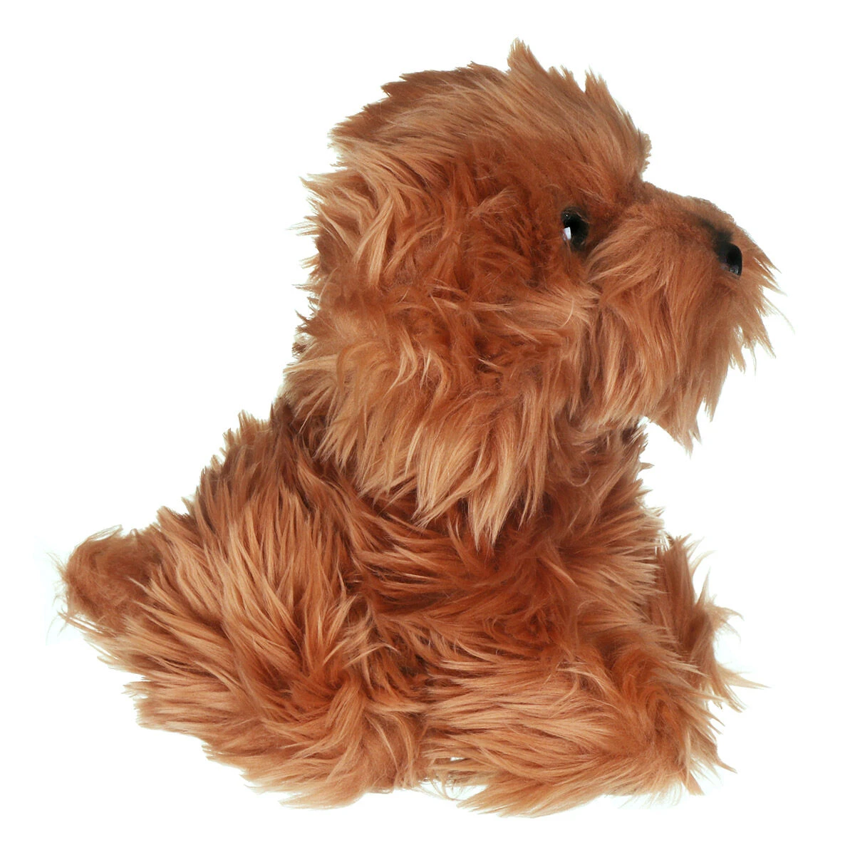 Made from a soft plush material featuring a fuzzy ginger fur coat, this adorable canine companion is perfect for snuggling up with.
