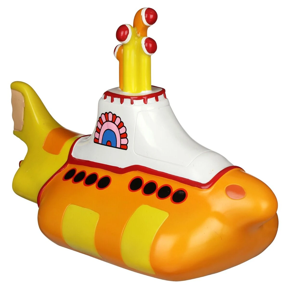 Featuring the iconic Yellow Submarine this unique lamp is made from polyresin for a safe and bright light. The light features a warm orange body with yellow tail, red and black detailing, a white hub and periscope on top. The lamp comes with a black cable and switch and a UK 3-pin plug for easy use.