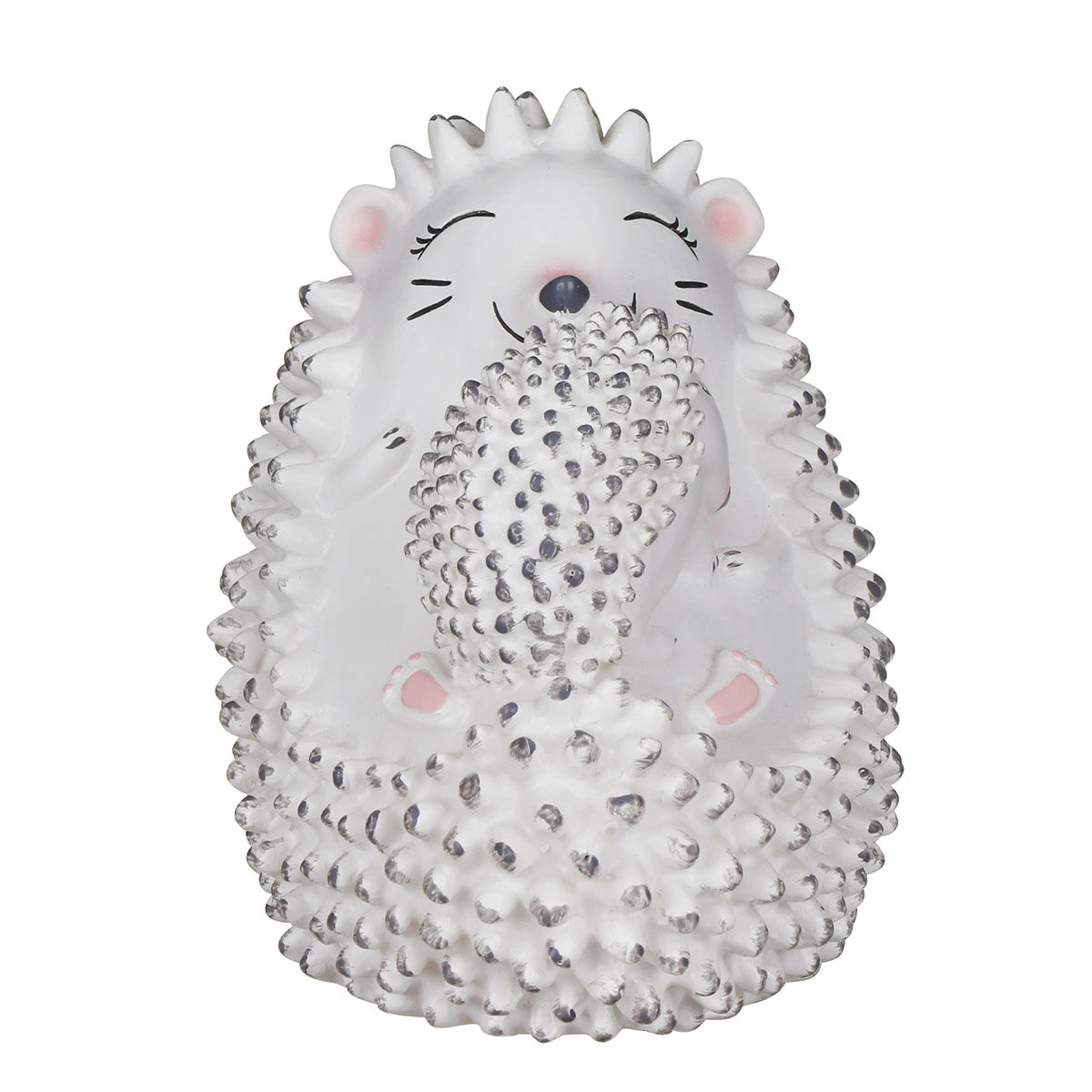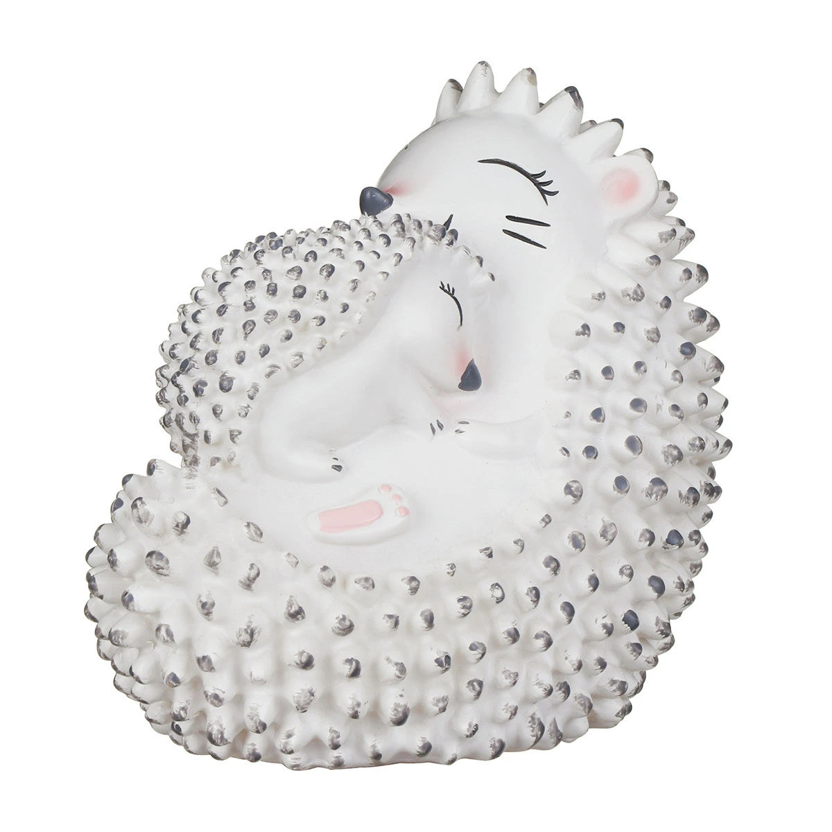This lamp features a mother hedgehog lying on its back holding her baby, embracing them in a snuggly embrace. Both hedgehogs are adorned with adorable faces and soft bumpy spines on their back complete with grey highlights and pink details which create a truly delightful design.