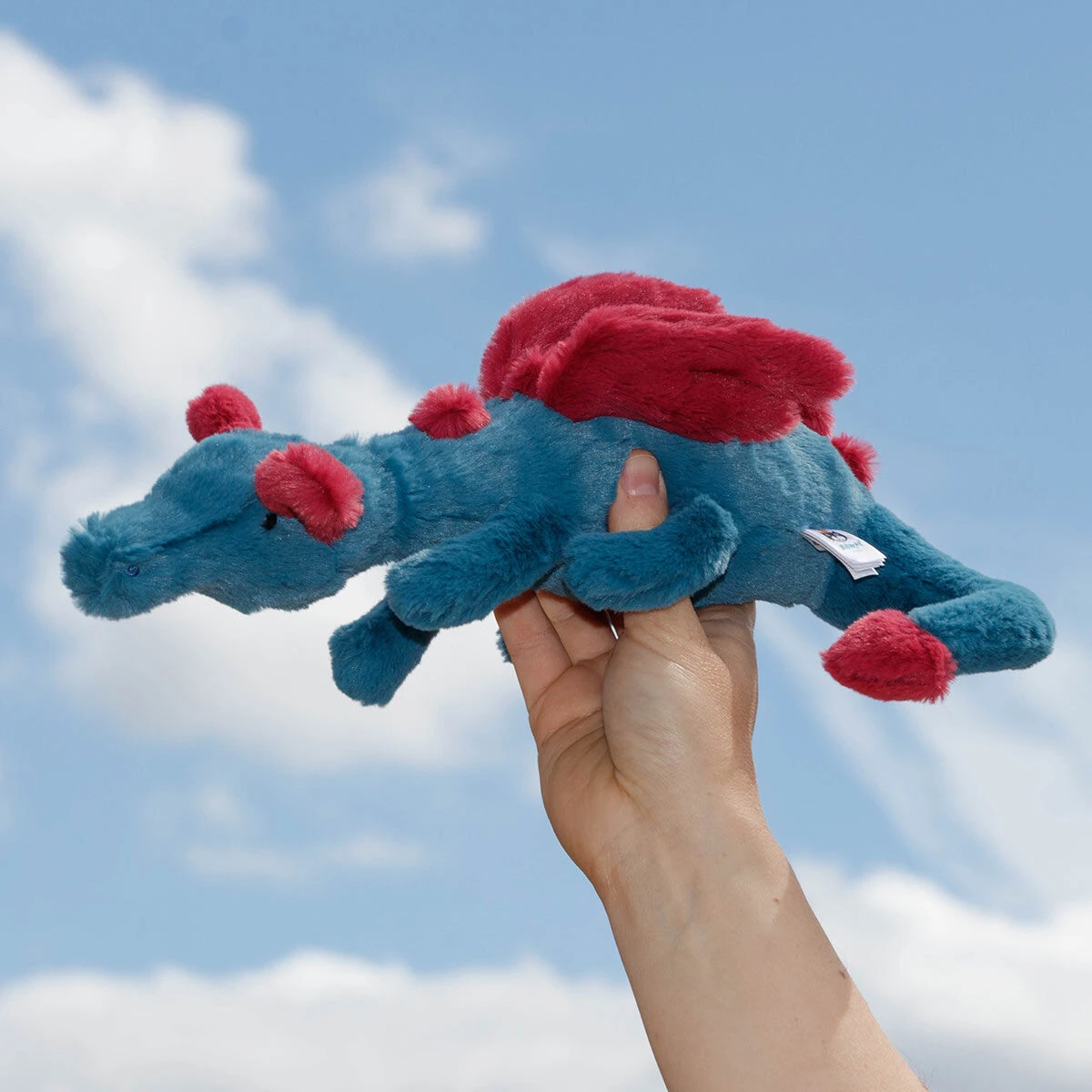 With velvety chalky blue fur, soft maroon horns, magnificent wings, a curling tail, and a cheeky grin, how can you resist his mythical charm?!