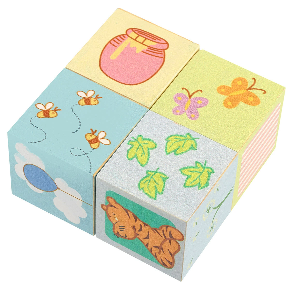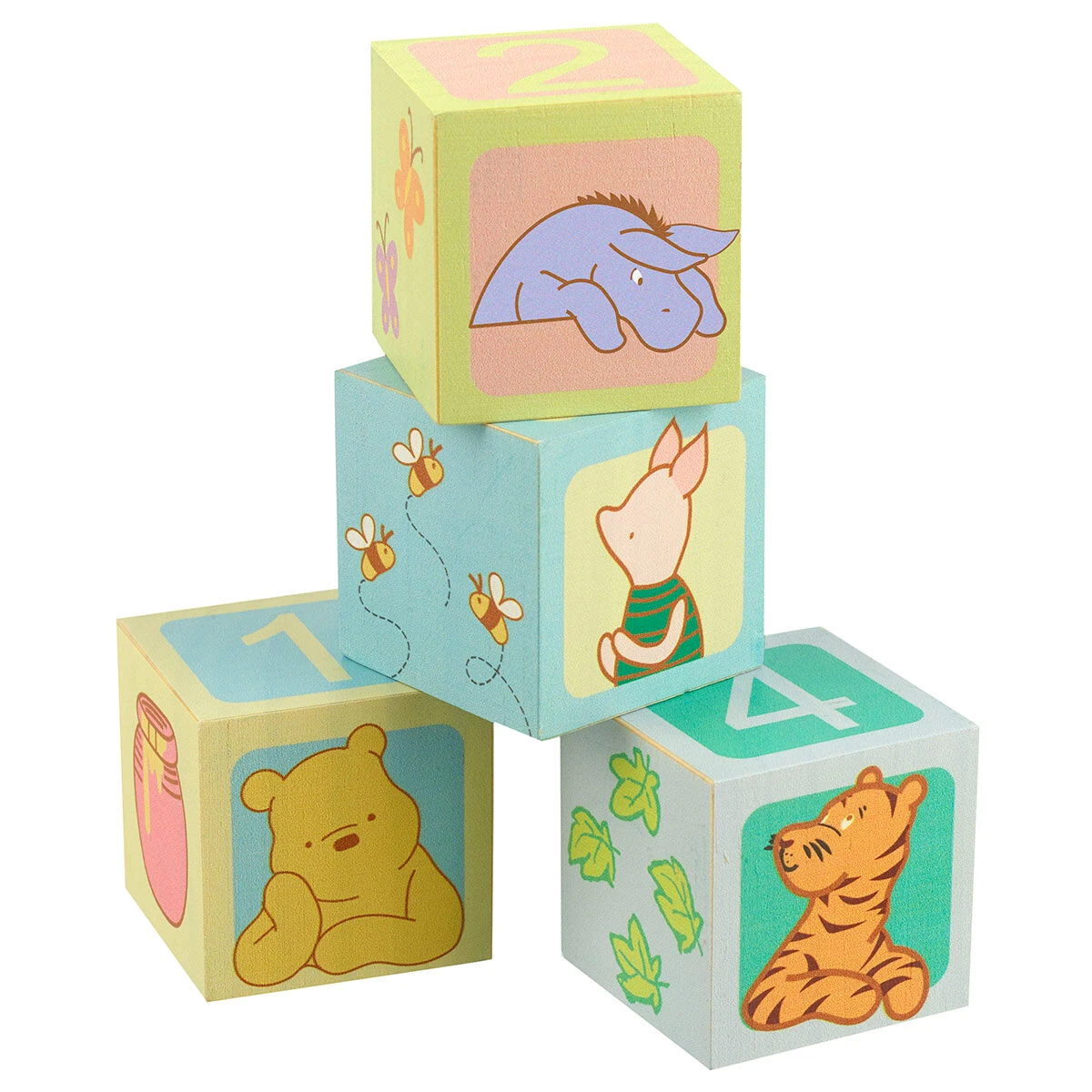 Painted in gorgeous colours, this set of four blocks each has a different character from the Winnie The Pooh Tales such as Winnie The Pooh, Tigger, Piglet and Eeyore! Each block also has a different number on which is great for encouraging your little ones to play and learn at the same time.