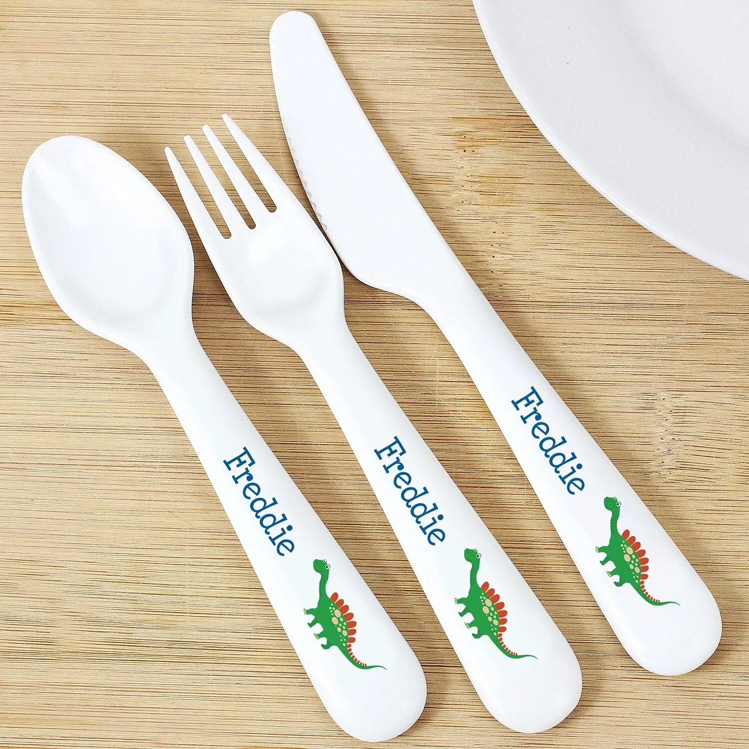 Personalised Dinosaur 3 Piece Plastic Cutlery Set