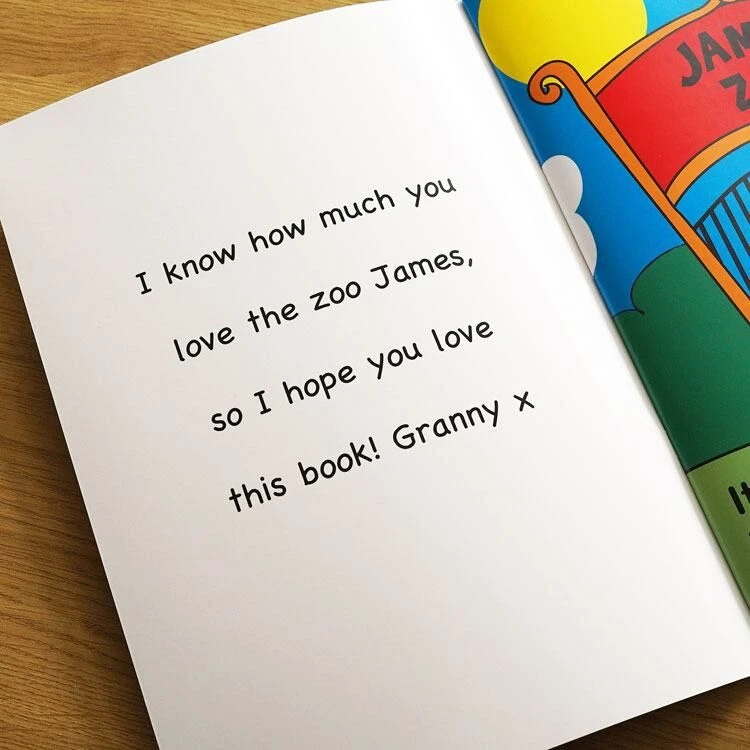 Both the name of the sender and the child’s home town also feature within the story making it extra special and personal. There is an additional space for a dedication inside the front cover of the book.