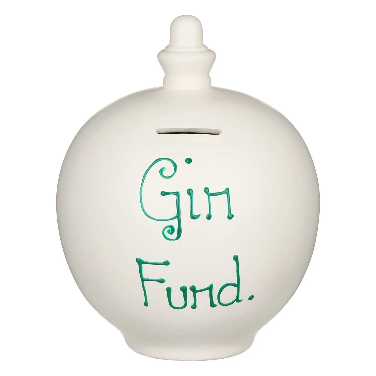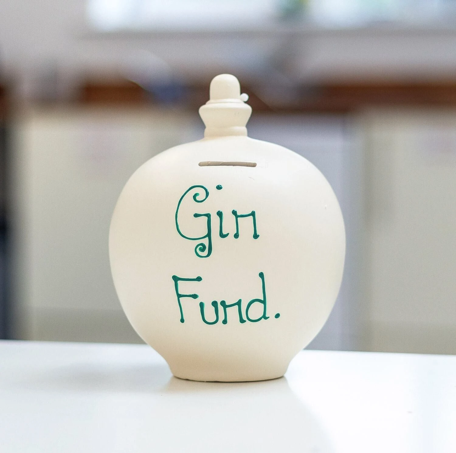 This brilliant ‘Gin Fund’ Money Pot is the perfect way to ensure the pounds are taking care of themselves and that there is always a budget for a much needed G & T on a rainy day! The soft cream colour and beautiful green font, reading the message ‘Gin Fund’ ensure that this pot is a center piece to be proud of! The reverse has been left blank, and we would highly recommend personalising it to add a lovely personal touch to your pot whether it is a treat for a loved one or a gift for you!