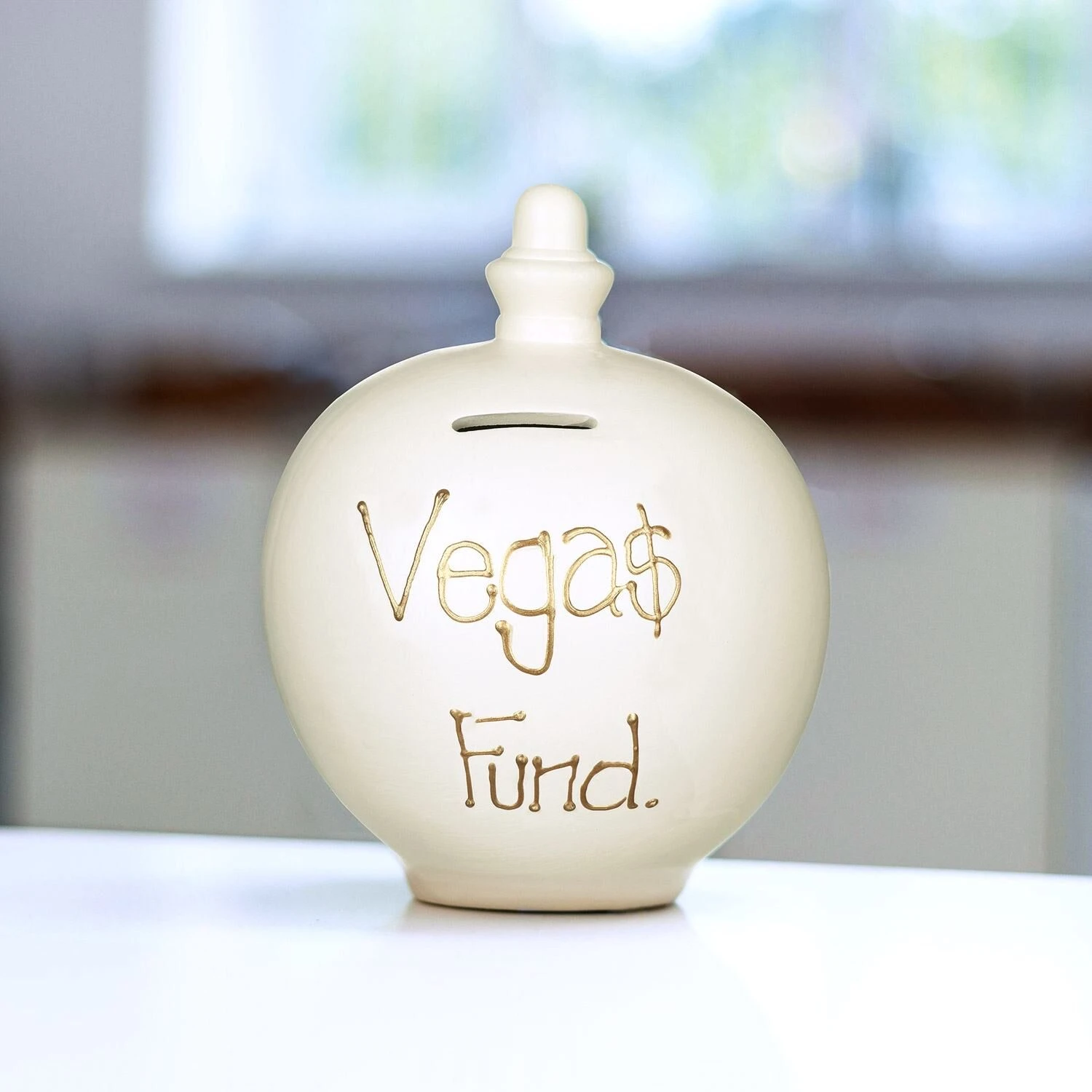 Whether you’re saving for a holiday to Las Vegas, or squirrelling away your money for once you get Sin City, this brilliant money pot is the perfect way to ensure the pounds are taking care of themselves! The soft cream colour and beautiful gold font, reading the message ‘Vega$ Fund.’ ensure that this pot is a center piece to be proud of! The reverse has been left blank, and we would highly recommend personalising it to add a lovely personal touch to your pot whether it is a treat for a loved one or a gift for you!