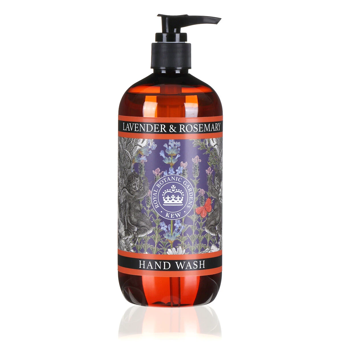 Gently wet your hands and apply a small amount of soap. Massage the soap into your hands creating a rich lather. The soap emits delicate aromas consisting of lavender and rosemary inspired by the Royal Botanic Gardens, Kew. This luxury soap is enriched with aloe vera and vitamin E which will nourish your hands. The liquid soap comes in a dark bottle with vintage floral images on a purple background, complete with the Royal Botanic Gardens, Kew logo in the centre.