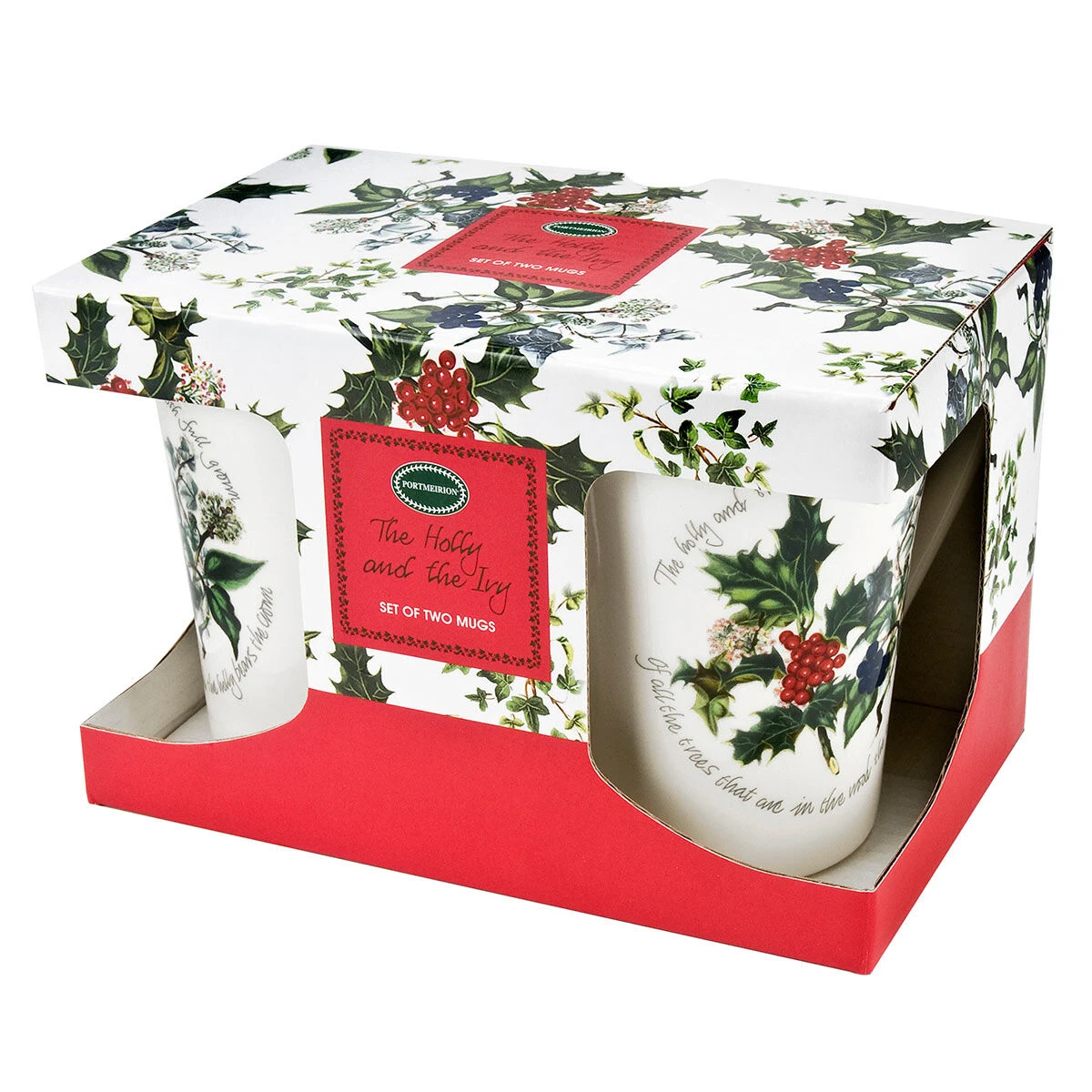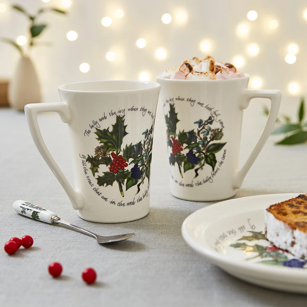 Enjoy morning coffee or afternoon tea with a friend in this set of two beautiful ‘The Holly and The Ivy’ mugs from Portmeirion.