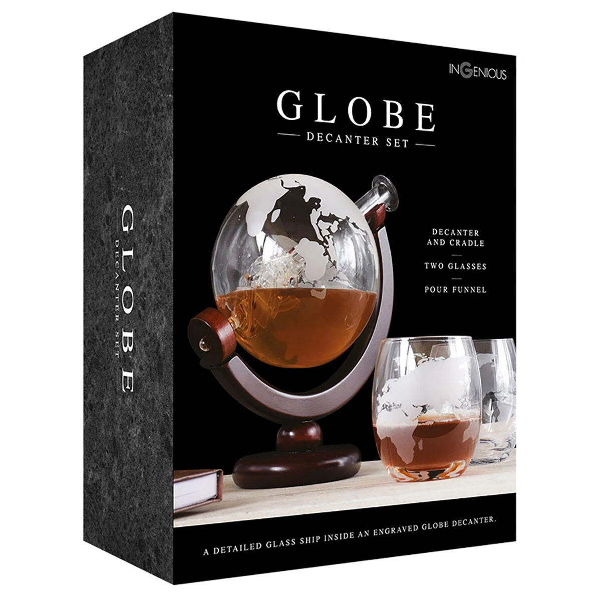 The globe-shaped decanter is made from high-quality glass engraved with the countries of the world, and it has a detailed glass ship inside. The decanter also has a funnel at the top to make pouring drinks easy, and it comes with an ornate wooden base, so its sure to take pride of place when displayed on your desktop or drinks cabinet.