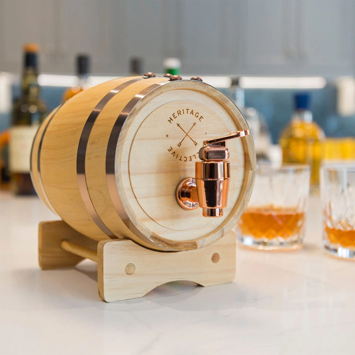 Made from solid wood with a rose-gold accents, the dispenser is sure to impress wherever it is displayed. You can even try infusing your spirits by dropping fresh herbs into the barrel! It’s convenient too, with a spout dispenser that pours the liquid cleanly and easily into your glass.