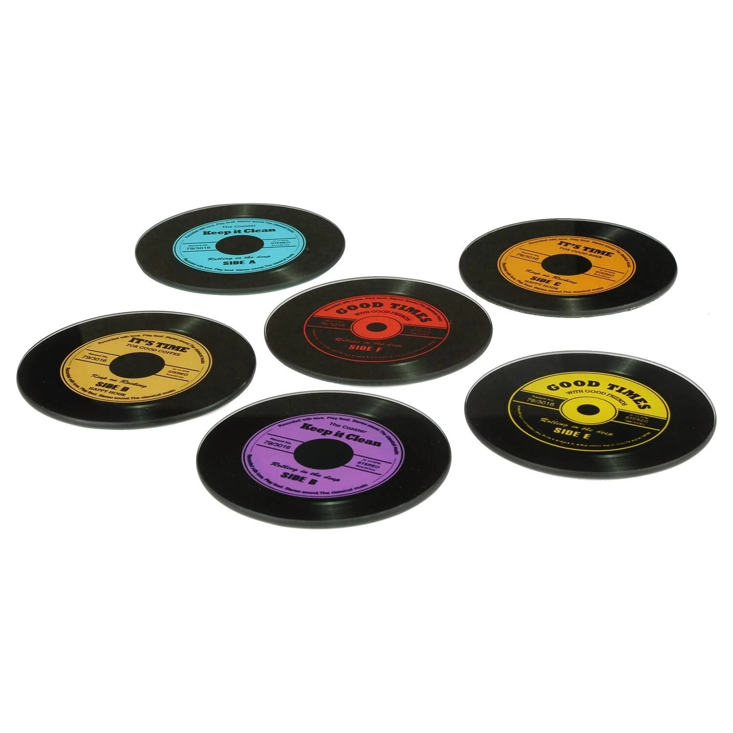 Give you coffee table a retro vibe with these stylish vinyl record glass coasters. They come boxed in a set of six and each one features a differently coloured retro label, making them perfect for old school music lovers.