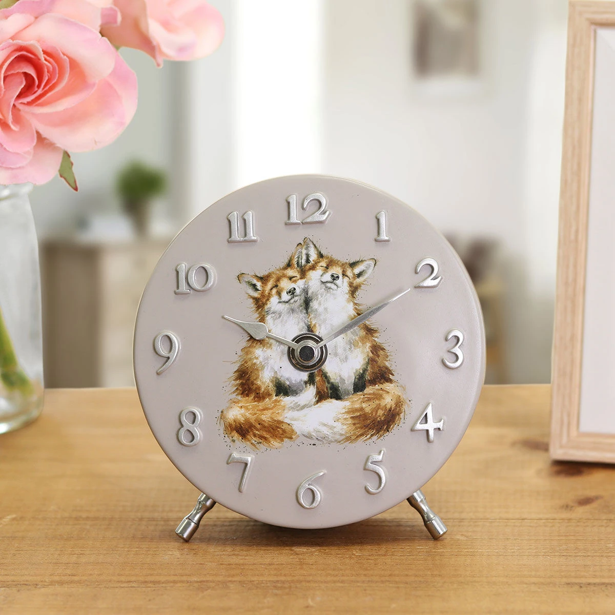 Keep track of time in style with this beautifully illustrated hare mantle clock from Wrendale Designs. The perfect addition to your mantlepiece or bedside table, this clock features a gorgeous image of a pair of playful, red foxes snuggled up together looking content and joyful with massive grins on their faces. Their tails are curled protectively round each other and they’re brushing their faces up against one another. The design is illustrated in the expressive style of artist Hannah Dale and designed in Lincolnshire, England.